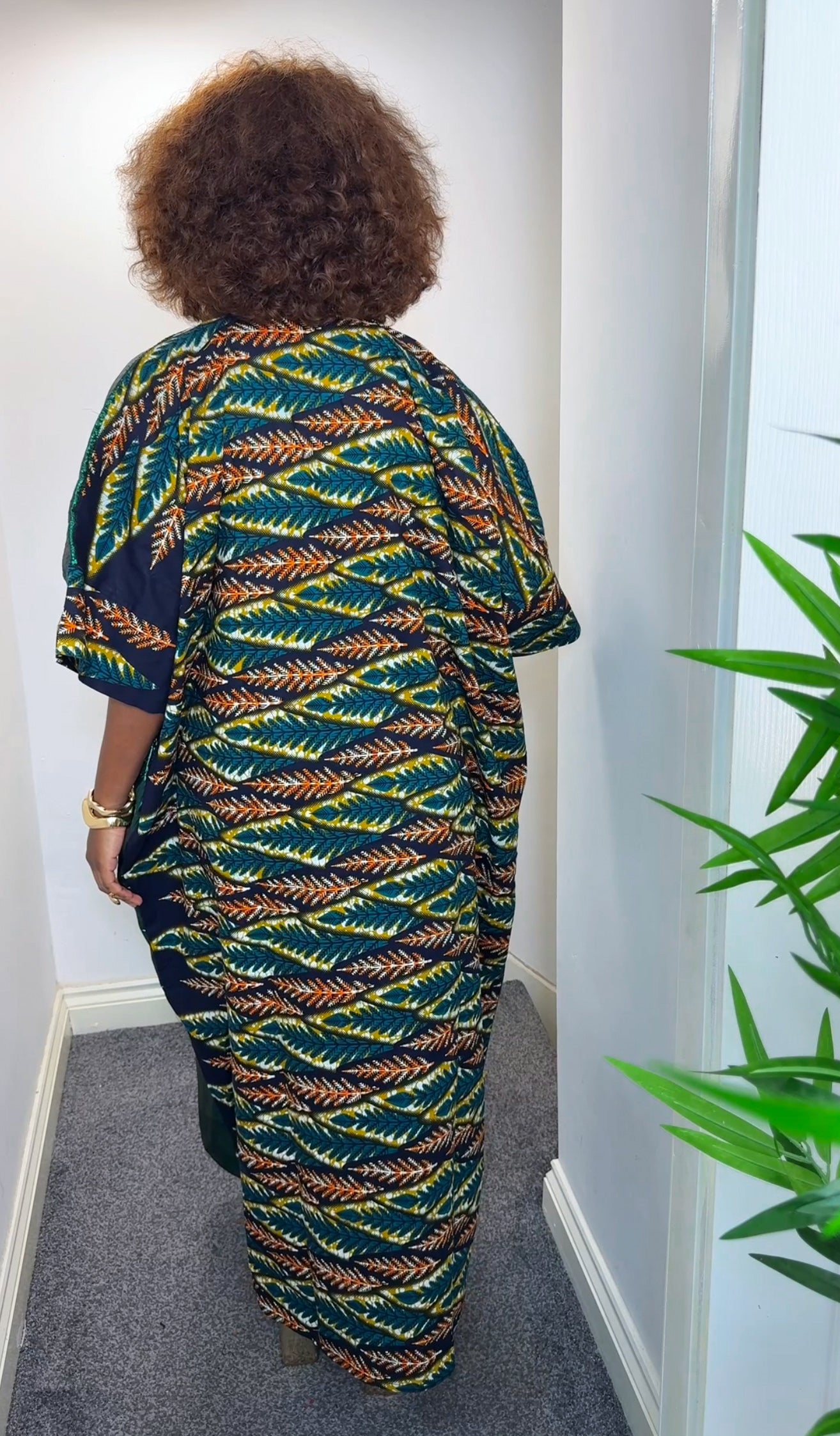 It’s a stunning fusion of an eye-catching metallic damask fabric and ankara fabric.