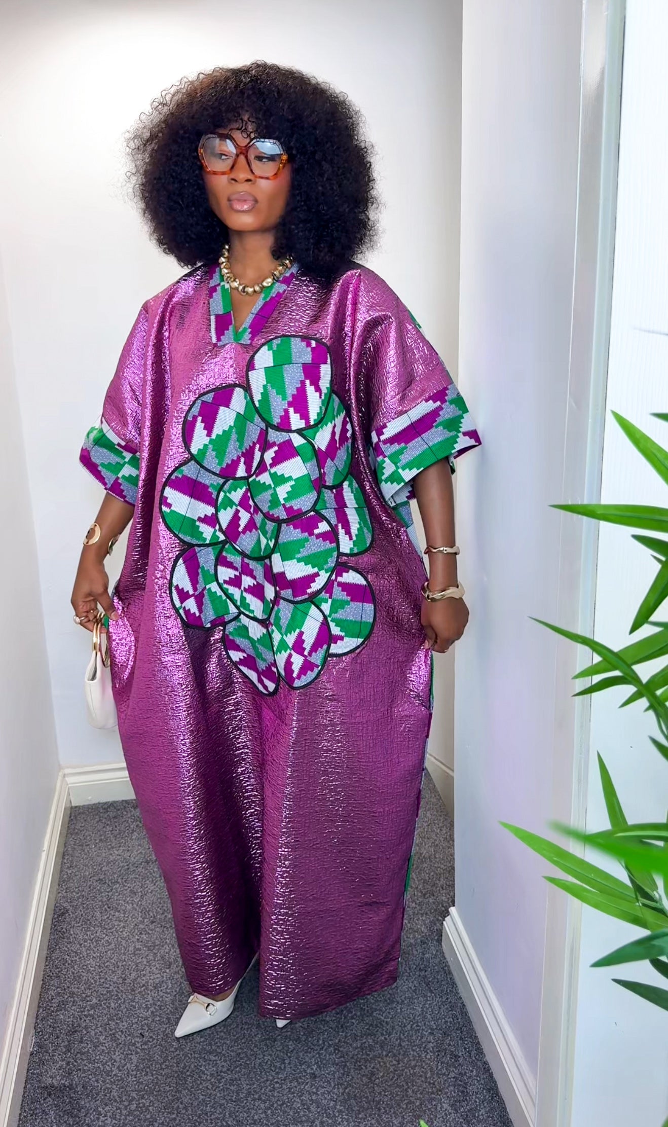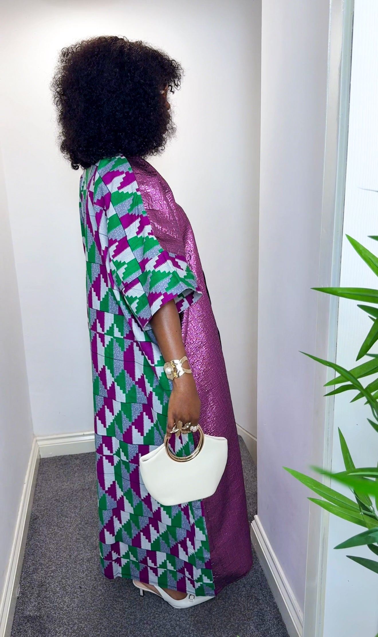 It’s a stunning fusion of an eye-catching metallic damask fabric and ankara fabric.
